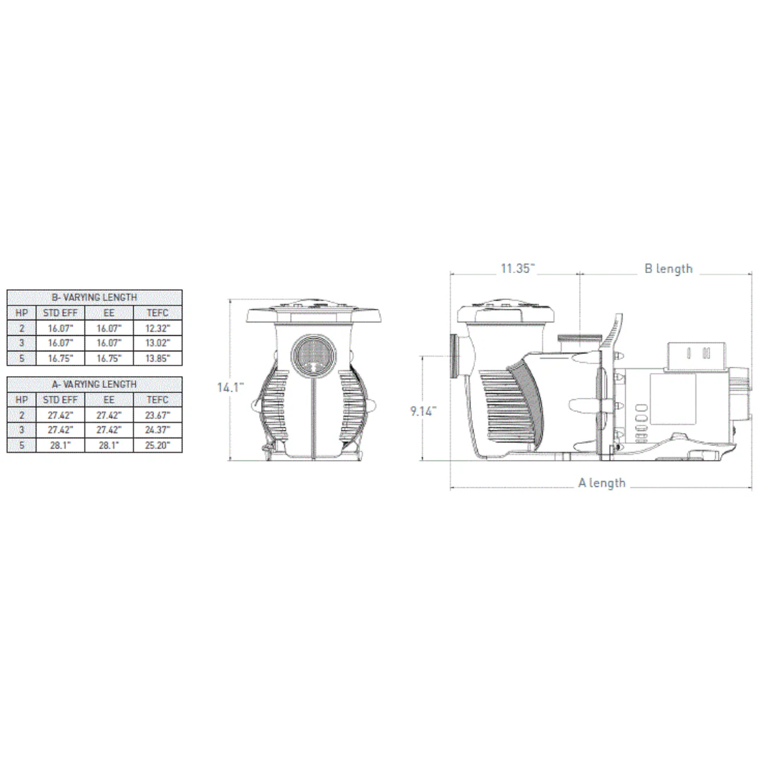 Pentair 022018 WhisperFloXF® XFK-12 3 Phase TEFC Premium Efficient High Performance Pump with Super-Duty Motor; 3 HP, 208-230/460V, 9.8-9.4/4.7 Amp