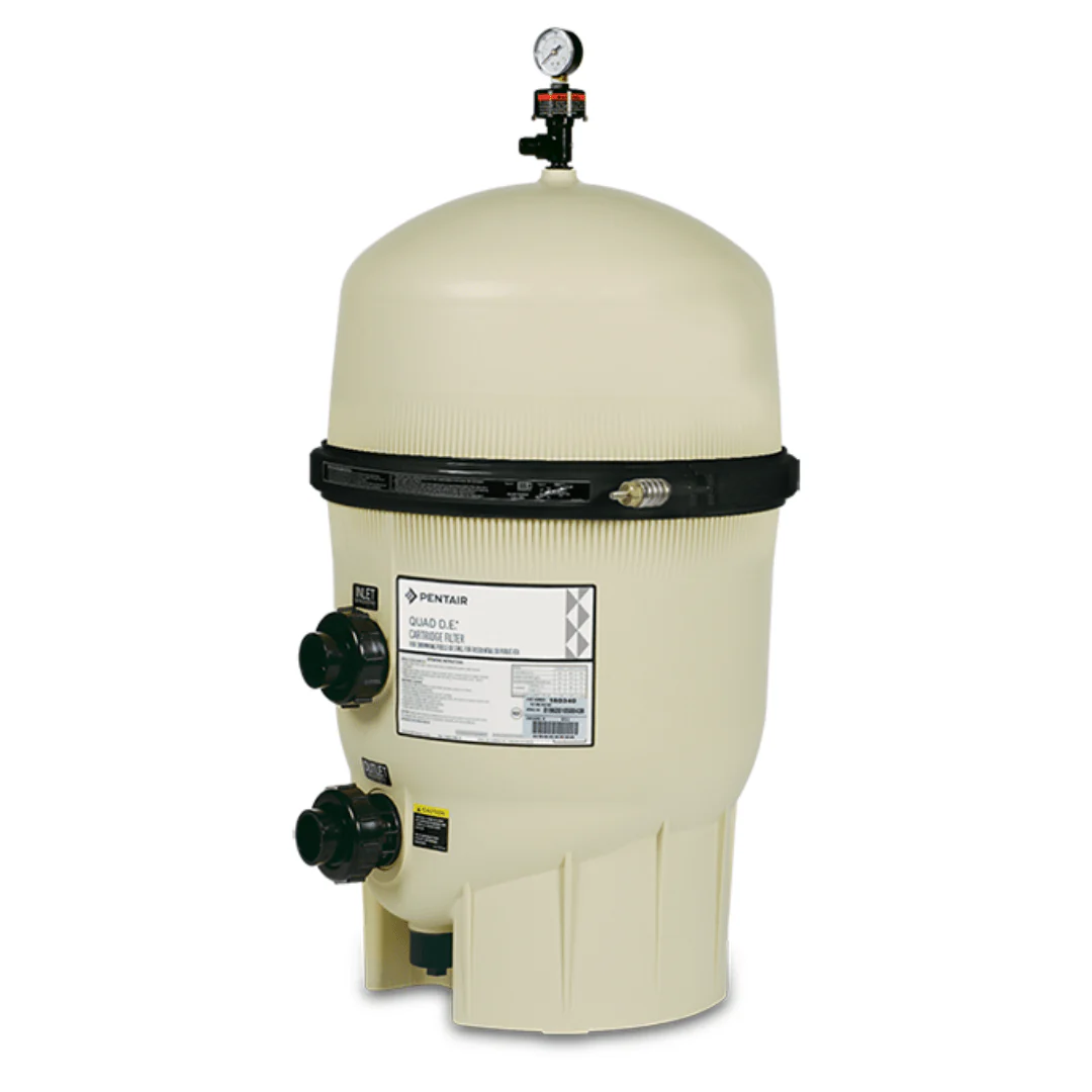 The Pentair Quad D.E.Ā® Pool Filter offers top-tier water clarity with minimal maintenance. It combines the superior filtration of D.E. with the easy cleaning of a cartridge filter, featuring four large-capacity, removable cartridges for extended cleaning intervals. Its unique internal flow path ensures optimal filtration and backwashing, while the durable, chemical-resistant tank provides long-lasting performance. The efficient water flow reduces pump energy usage, saving time and costs.